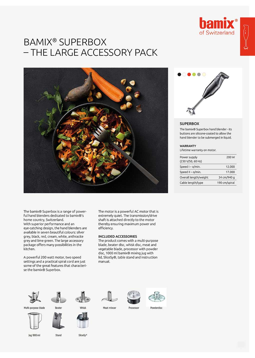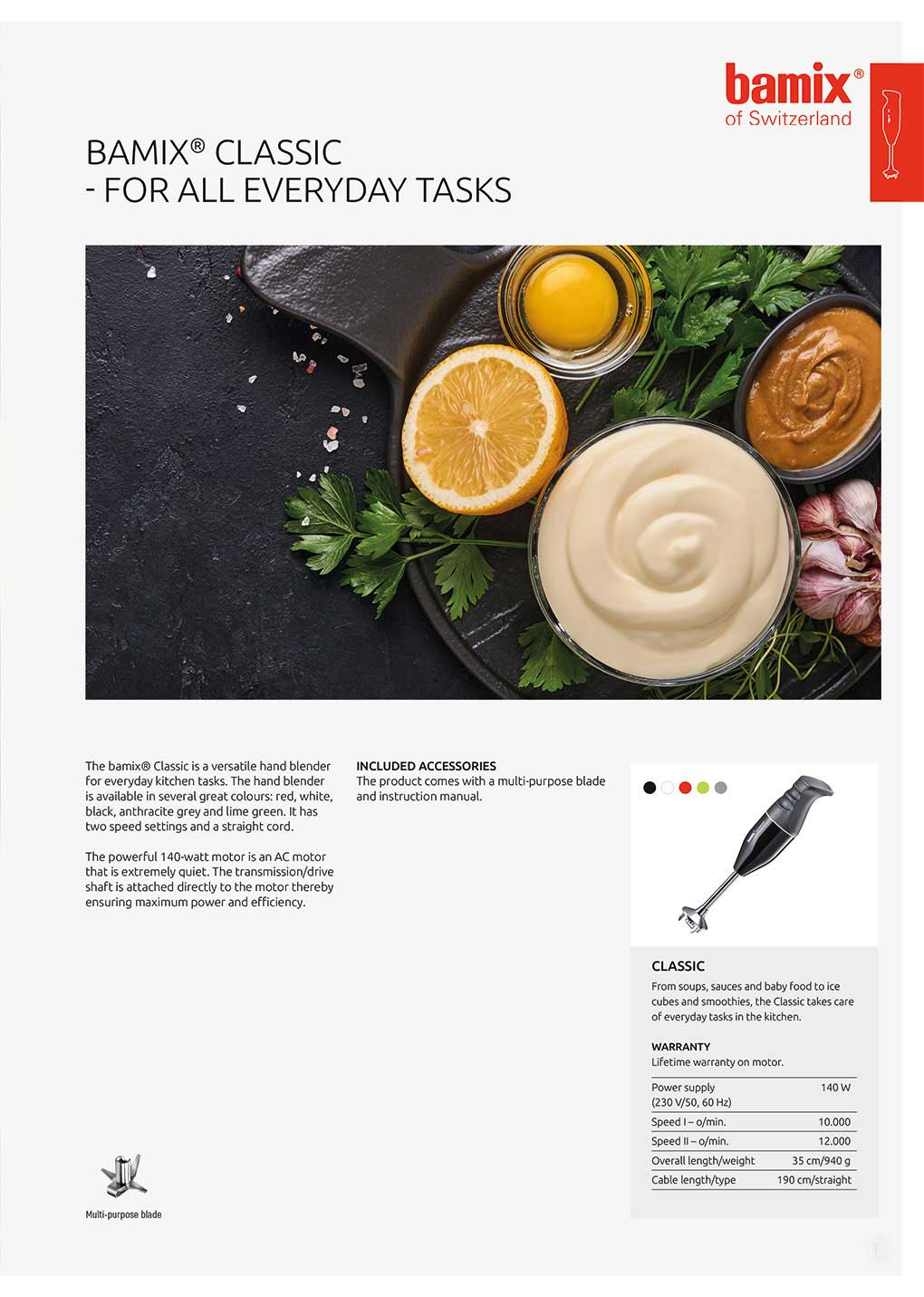 Manufactured exclusively in Switzerland since 1954, bamix® is globally recognized for its precision engineering, powerful motor technology, and exceptional durability. Designed for both home and professional kitchens, it represents a legacy of innovation and uncompromising quality.